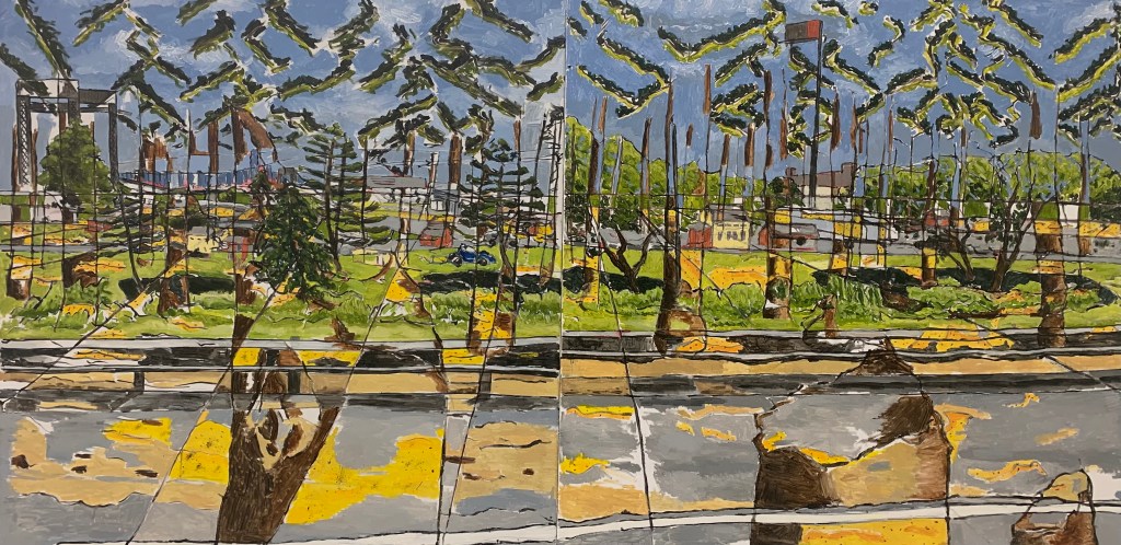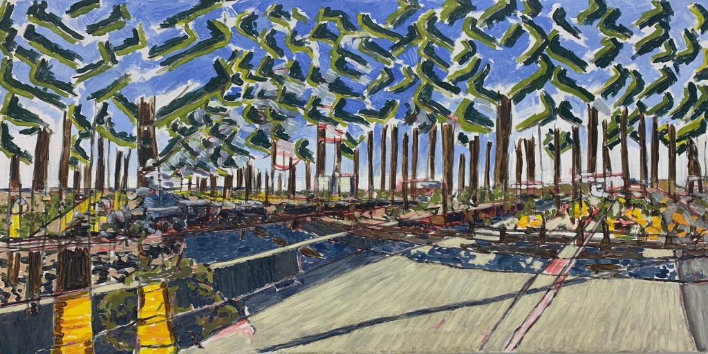 Post-Industrial Highway, 2022, Oil on Canvas, 61×121.9cm (24″x48″)